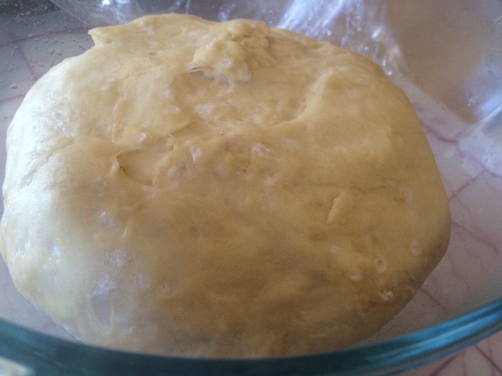Add the egg and oil, mixing gently.  Add the flour and salt.  Knead by hand or with a dough hook until a ball forms.