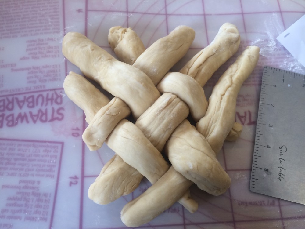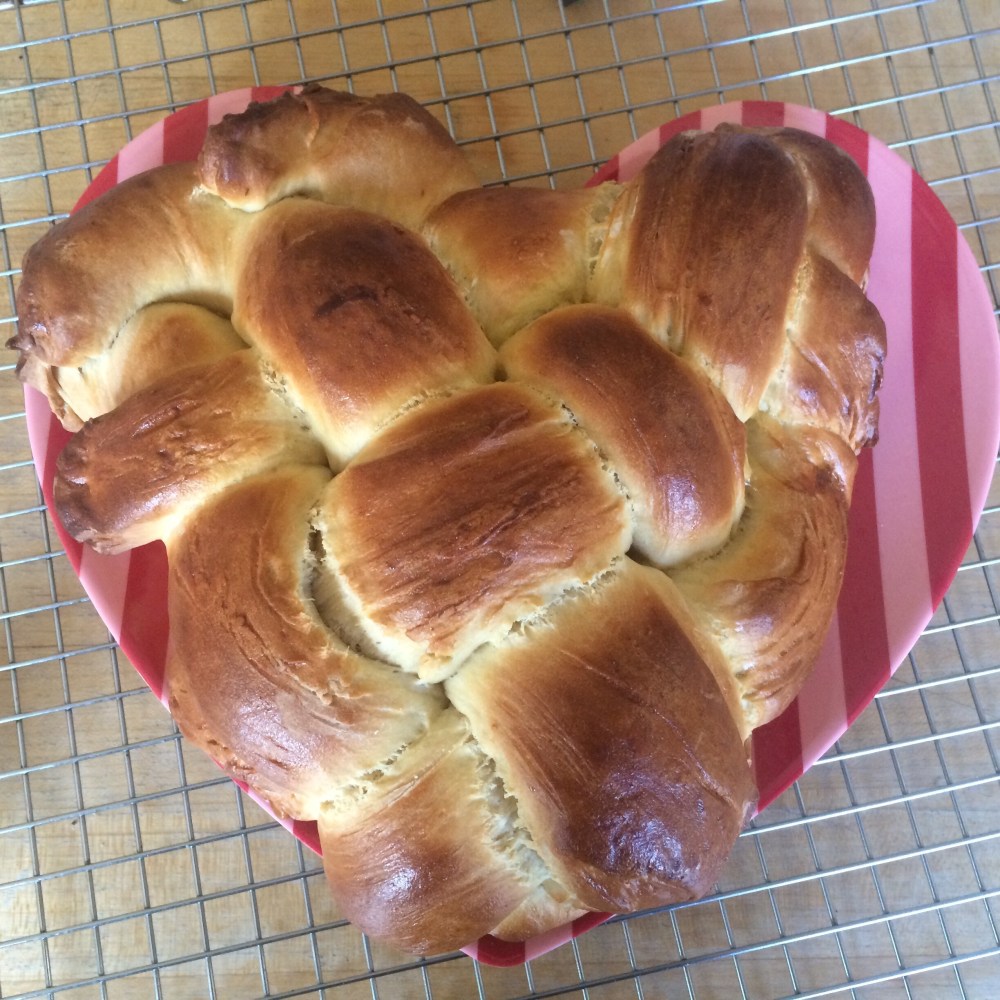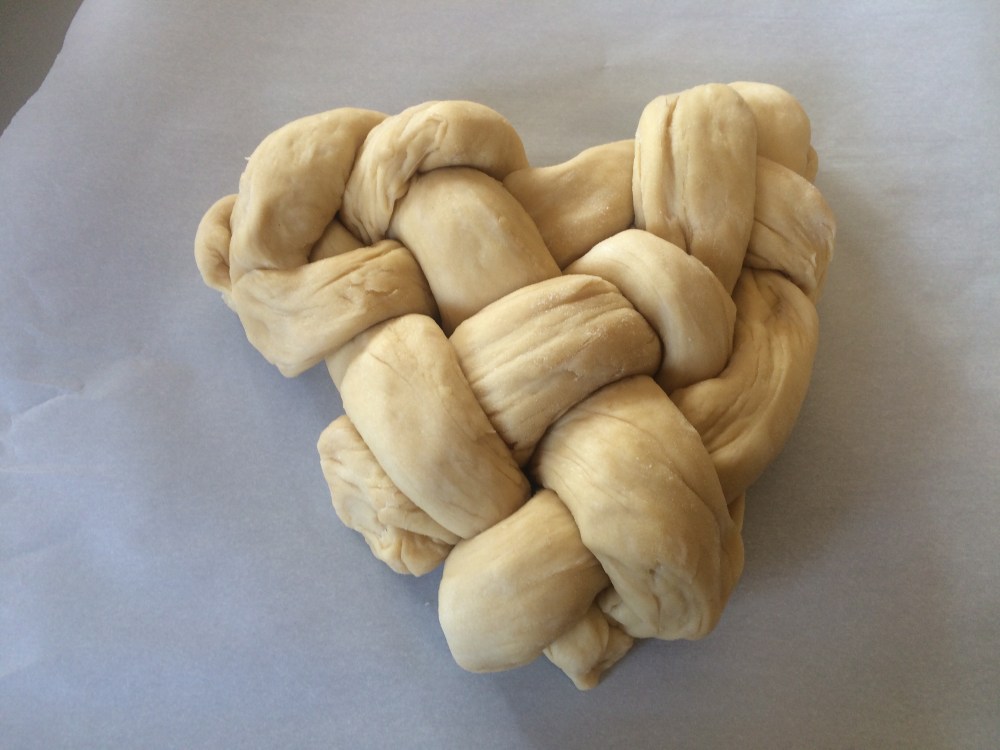Braiding the challah was fun.  A bit of trial and error. I wish the sides were a bit more even, bit, it definitely looks like a heart.