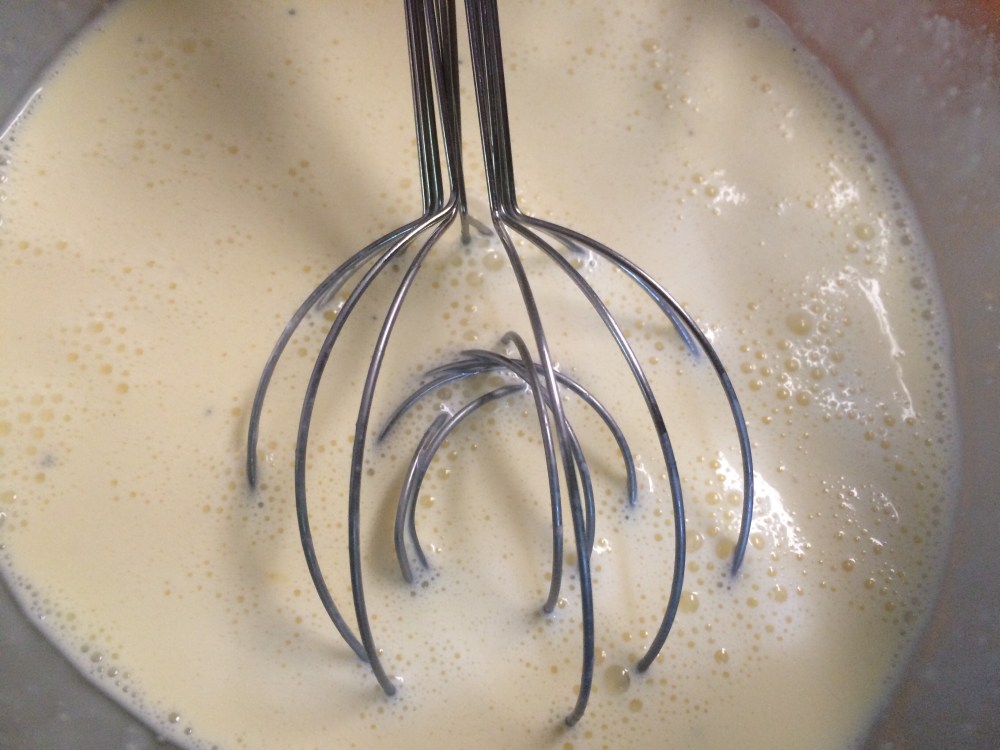 Preheat oven to 375. In a medium bowl, combine eggs, milk, cream, salt, and pepper, blending until smooth and well combined. Set aside.