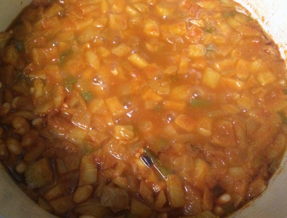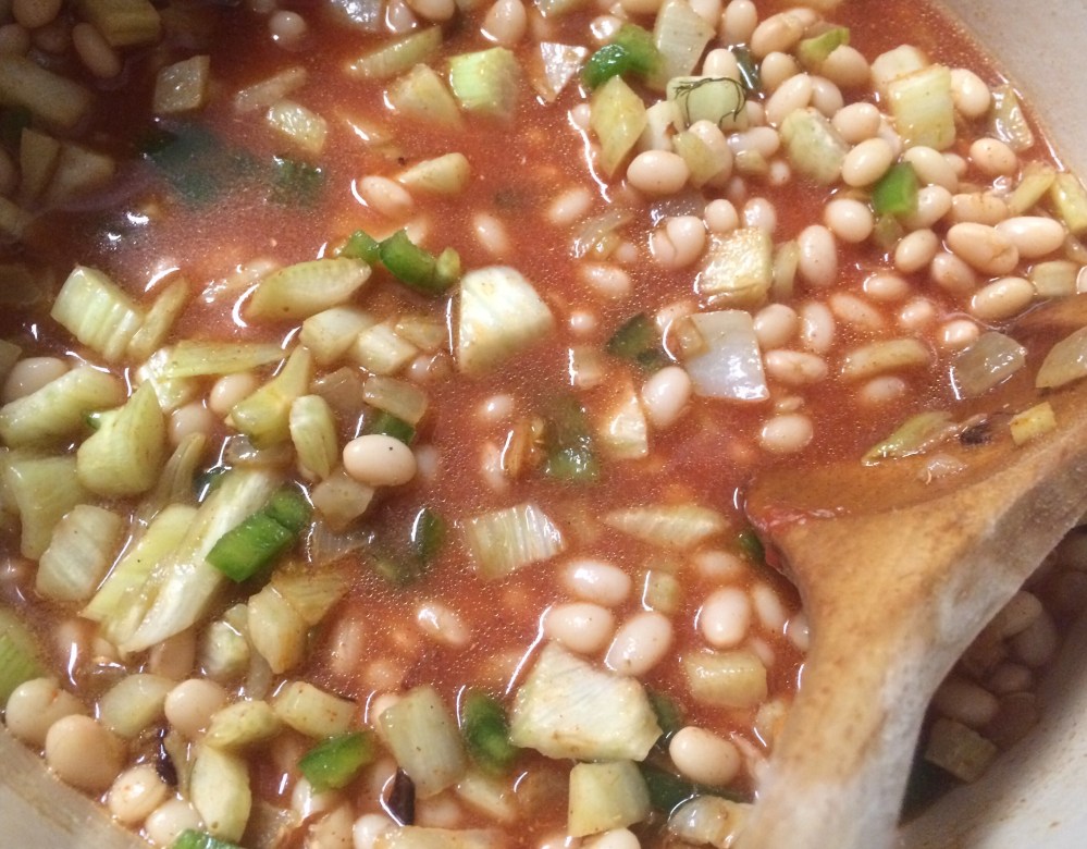 Add collard greens to beans and vegetables. Bring back to a simmer, cover and simmer 15 to 30 minutes, until greens and beans are tender.