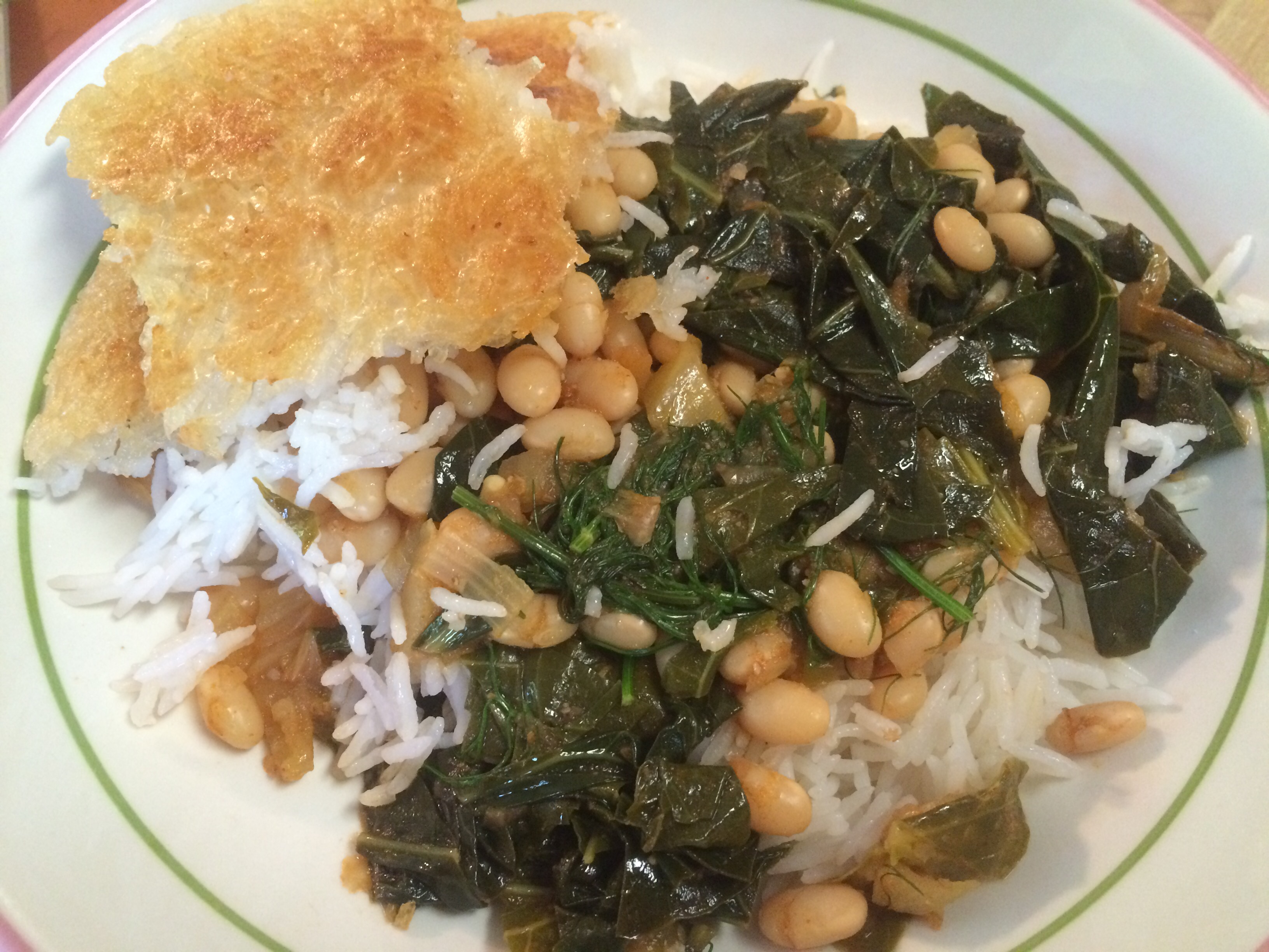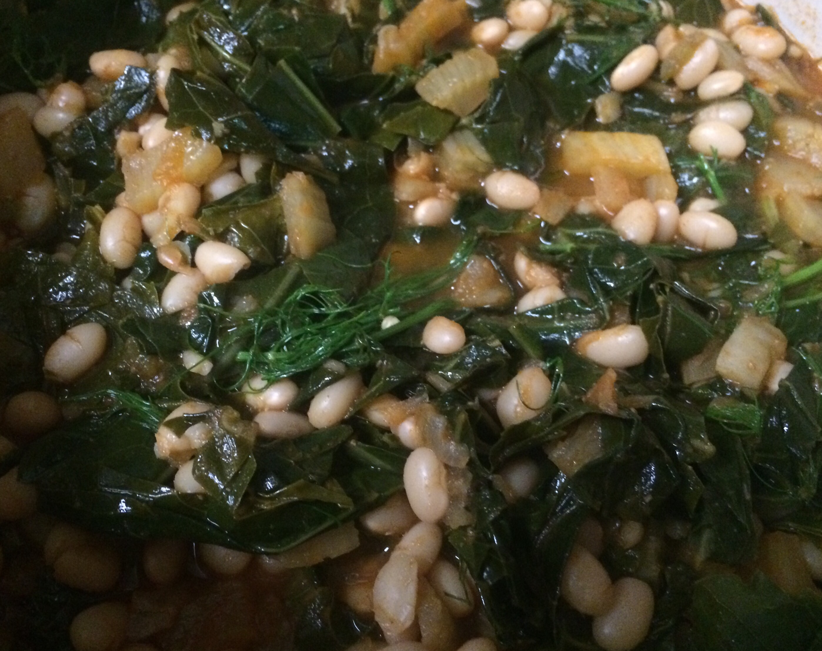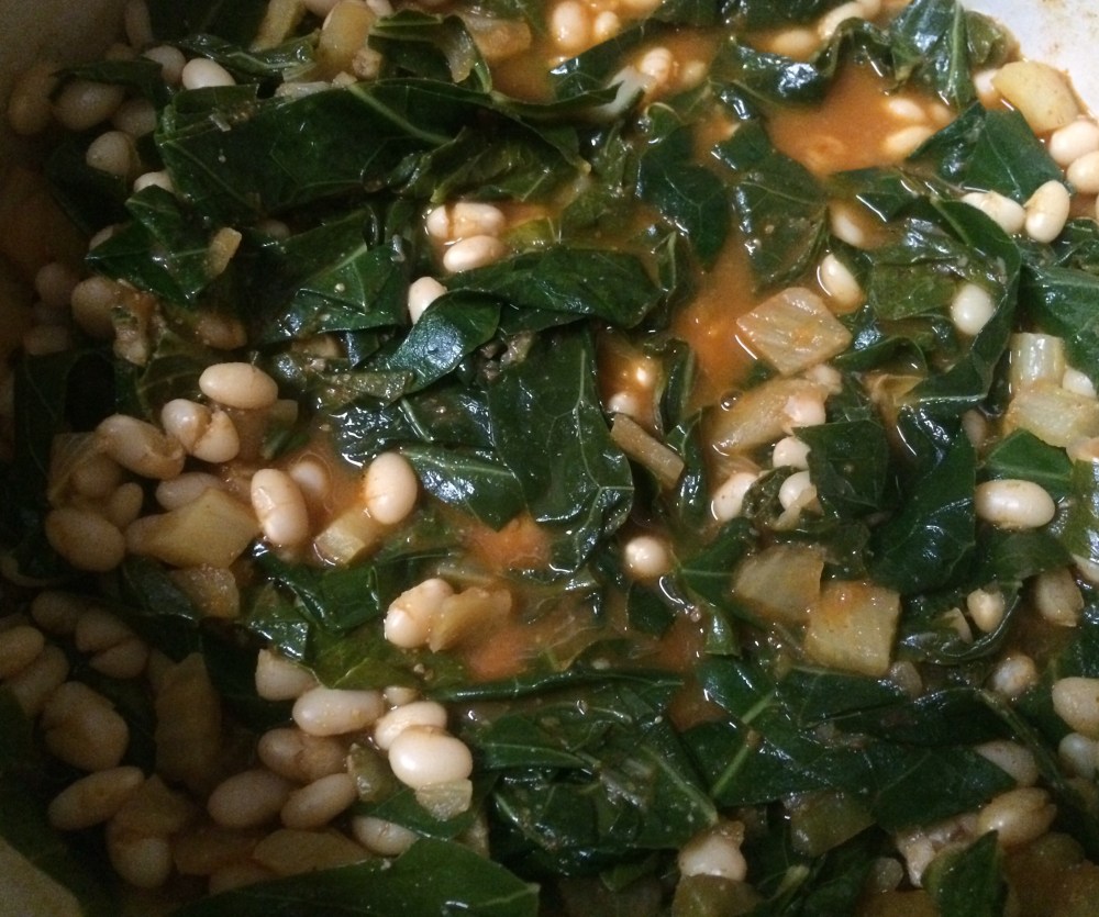 Adapted from Marth Rose Shulman’s Collard Greens Tagine with Flageolots