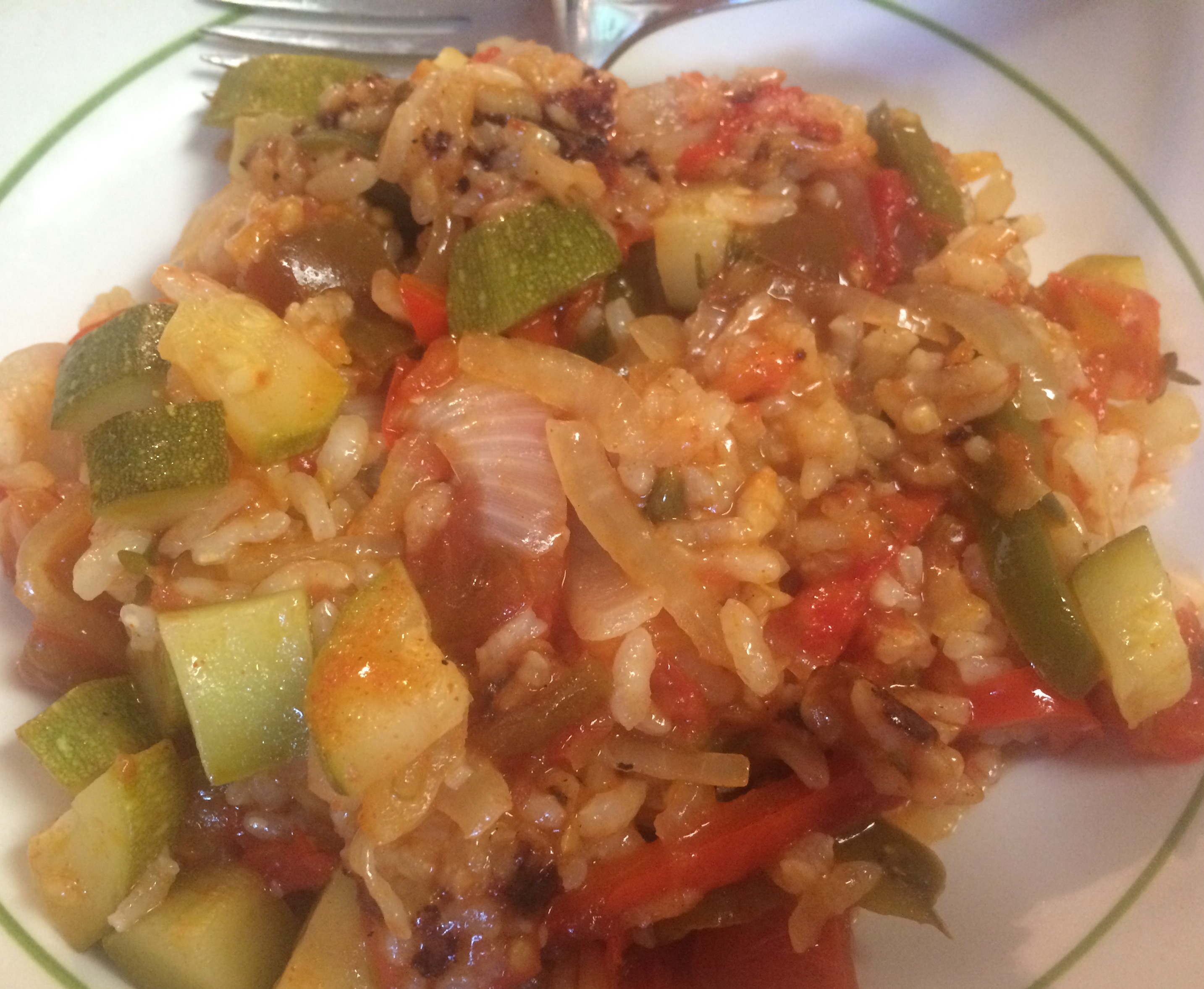 Memories of Spain… garden vegetables… a satisfying vegetarian dinner… happiness.