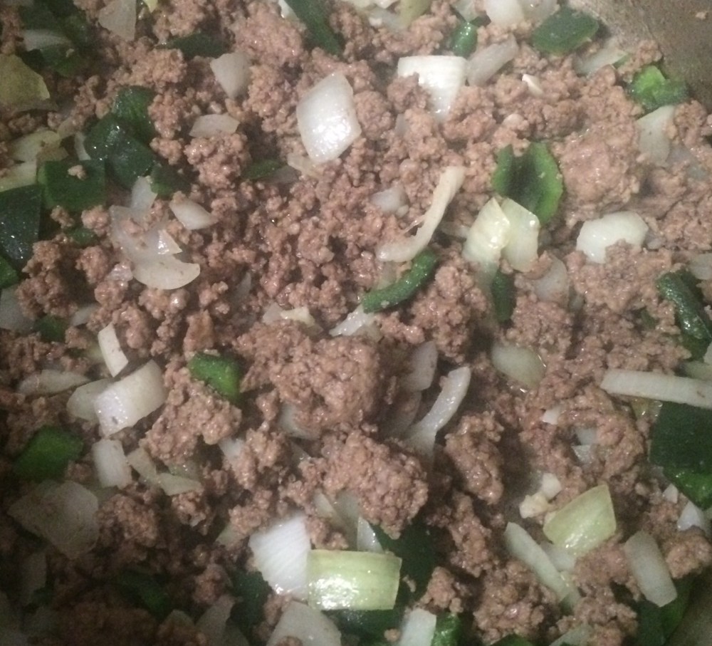 Heat the olive oil in a large pot over medium-high heat. Add the ground beef and brown, breaking up the meat as it cooks, about 3 minutes. Add the onion, poblano and garlic; cook, stirring occasionally, until the vegetables are tender and lightly browned, about 5 minutes.