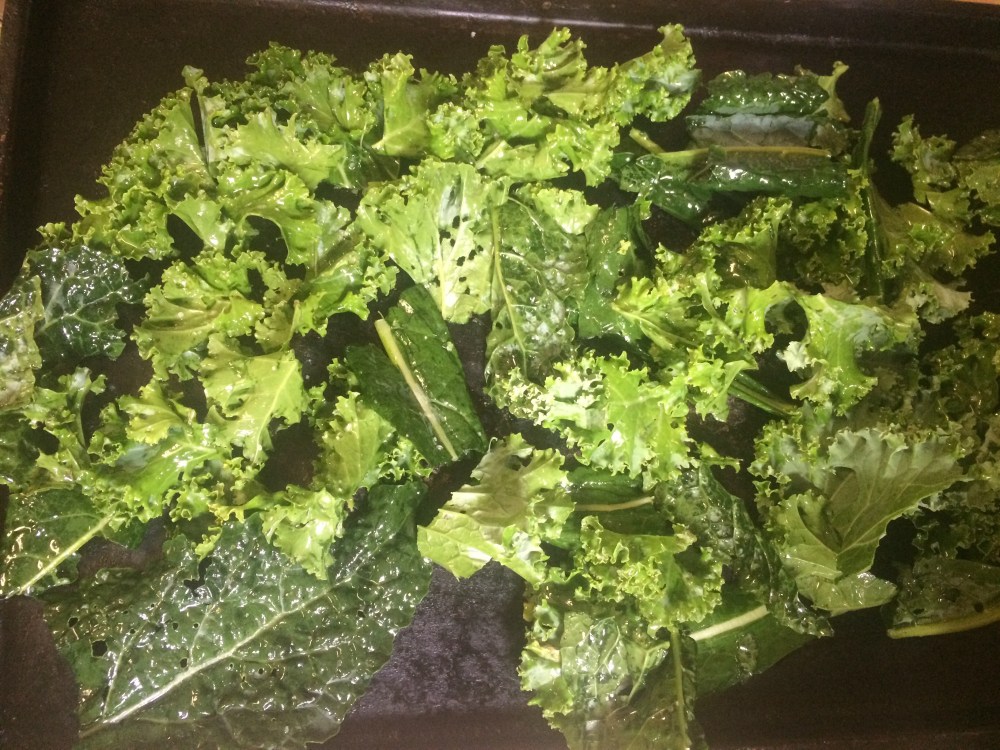 Spread the kale in single layers on 2 baking sheets.