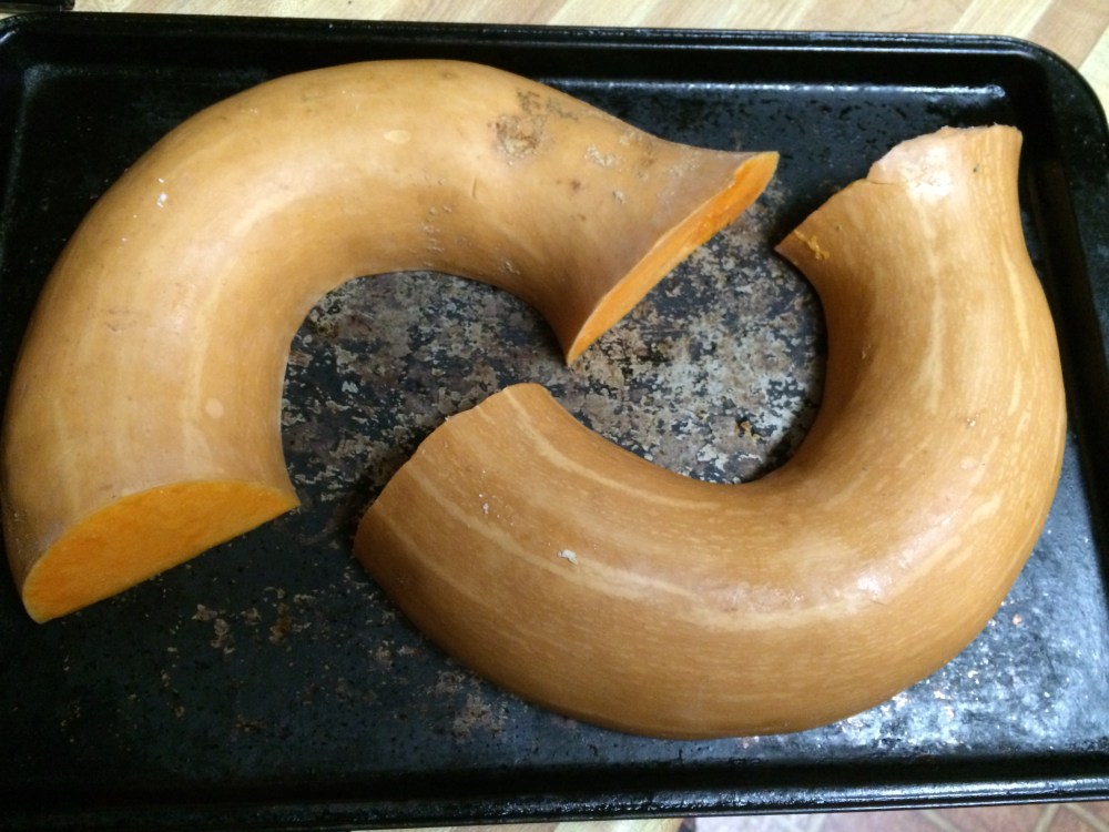 1 butternut squash (or part of a crookneck squash), enough to get 2 1/2 cups of pulp (locally grown)