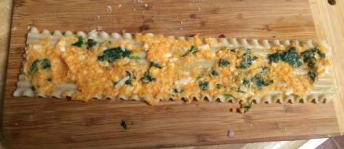 I used the squash in place of butternut for these lasagna roll ups. The squash is the base for both the filling and the sauce.