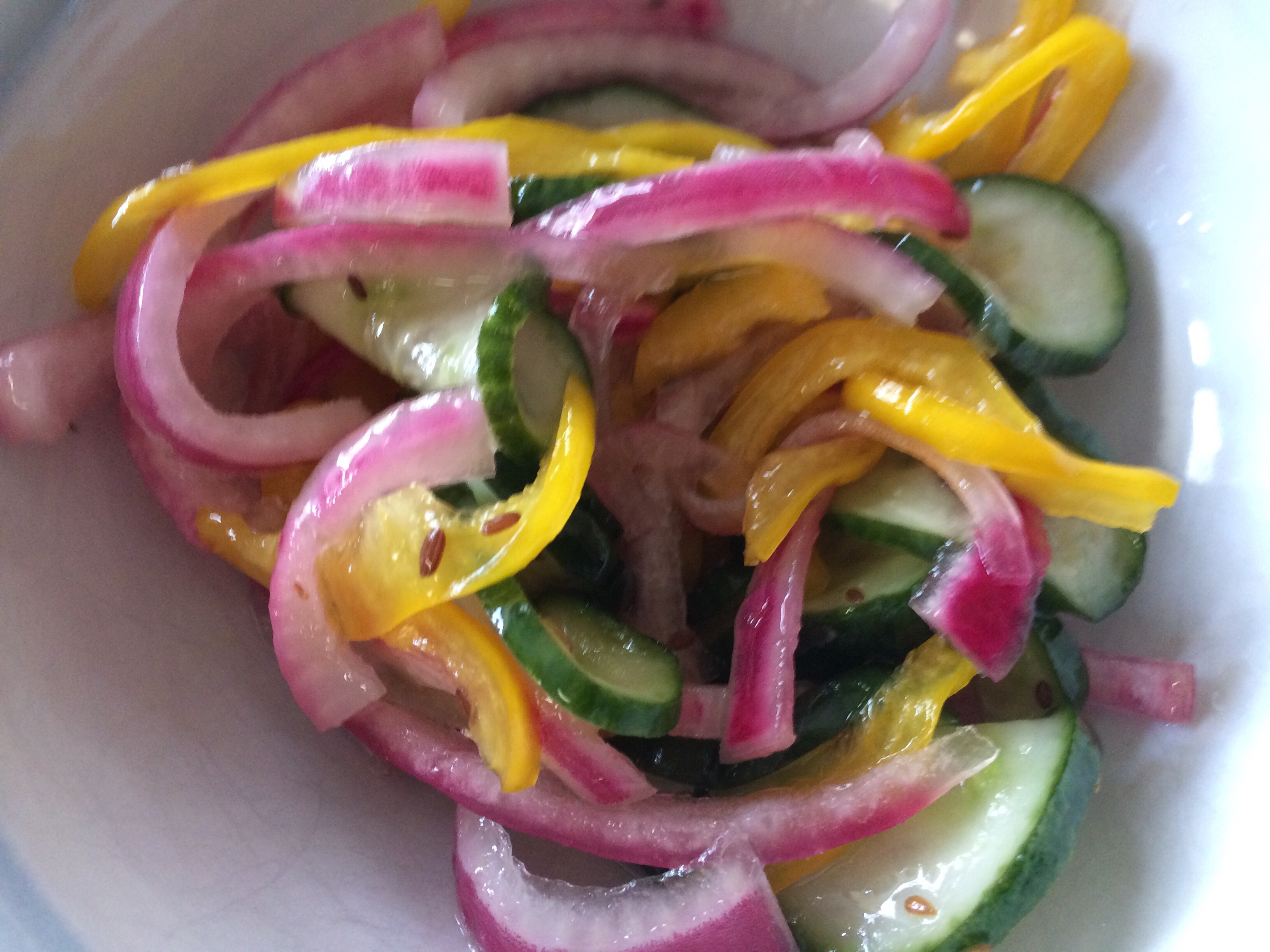 I loved pickles and pickling things, so I decided to try a riff on Trisha Yearwood’s cucumber salad.