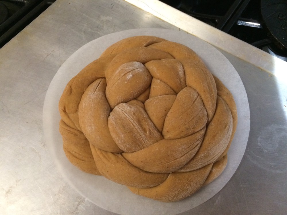 It’s that time of year. Cookies, gingerbread houses, my muslim husband putting up lights and a Christmas tree (he likes them). So, why not? A gingerbread challah.