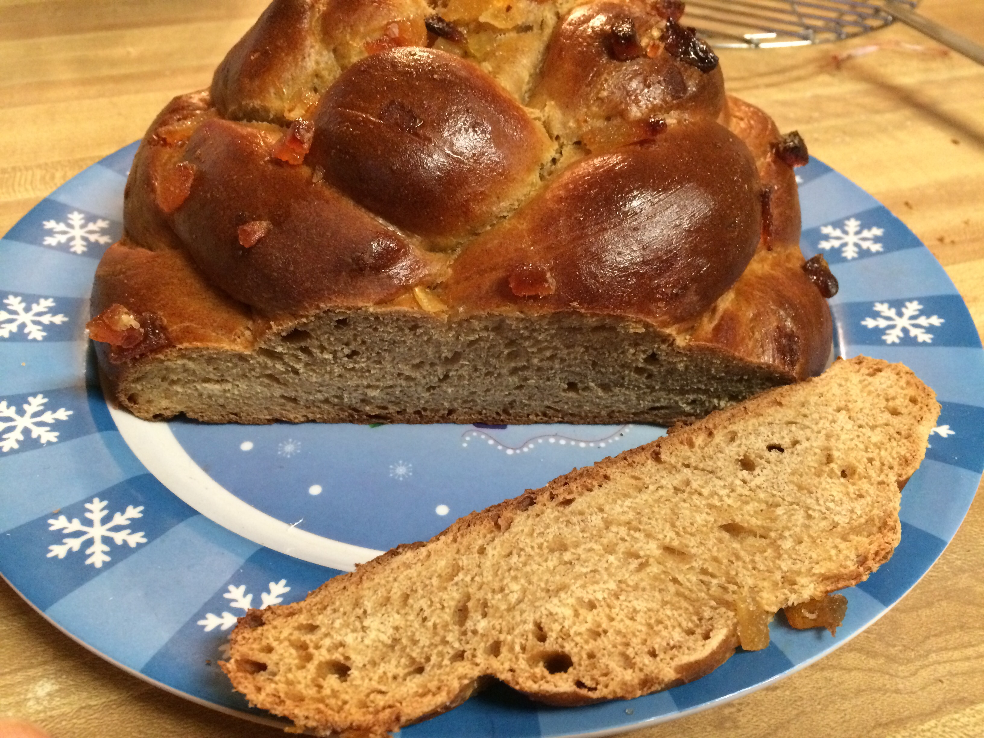 It’s that time of year. Cookies, gingerbread houses, my muslim husband putting up lights and a Christmas tree (he likes them). So, why not? A gingerbread challah.