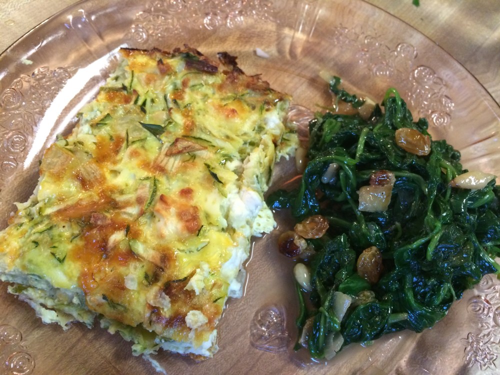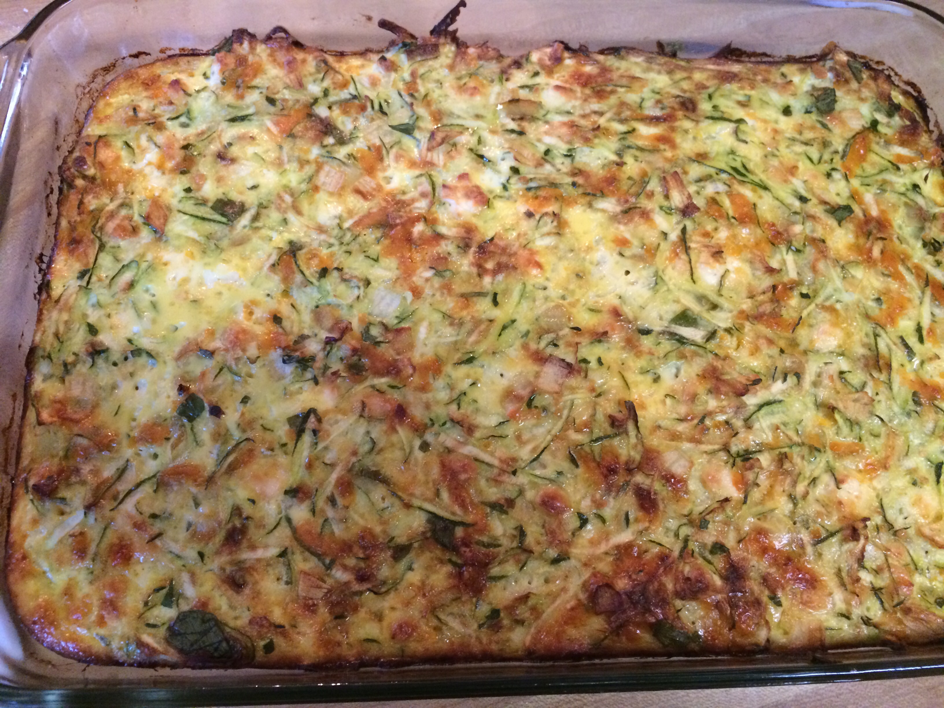 Lauren is home, so we needed a vegetarian dinner option and opted for a Quajado, an egg, cheese and vegetable dish. For tonight, we used zucchini, feta and cheddar. The combination was simply delicious. Salty, rich and slightly sweet.