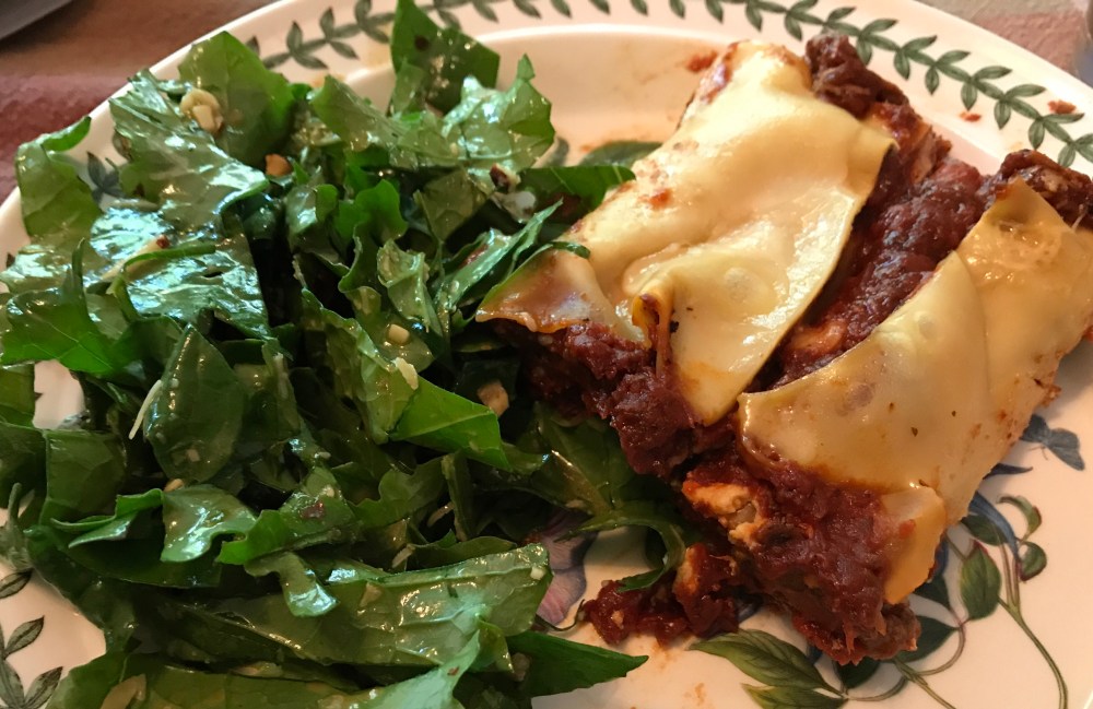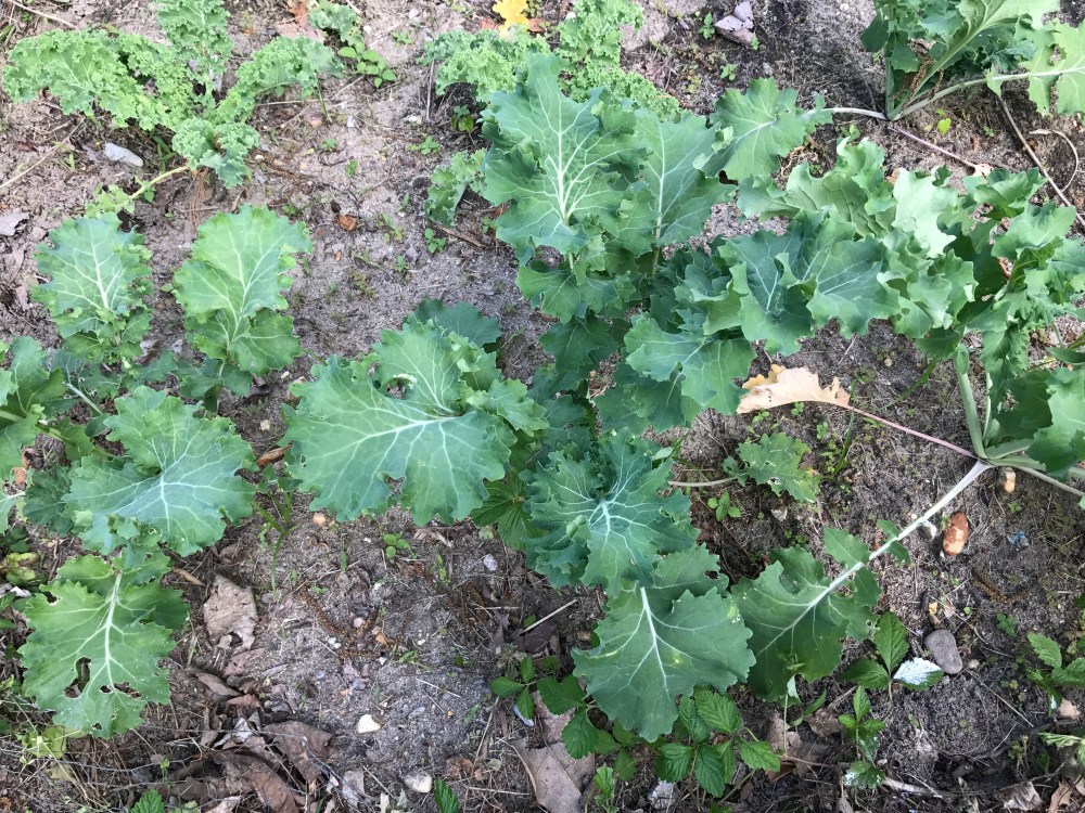 As you can see I am growing two different types of kale, curly and siberian. The curly kale is still small, but the siberian has grown more quickly. I harvested enough to make a flavorful Caesar-type salad to have with our lasagna.