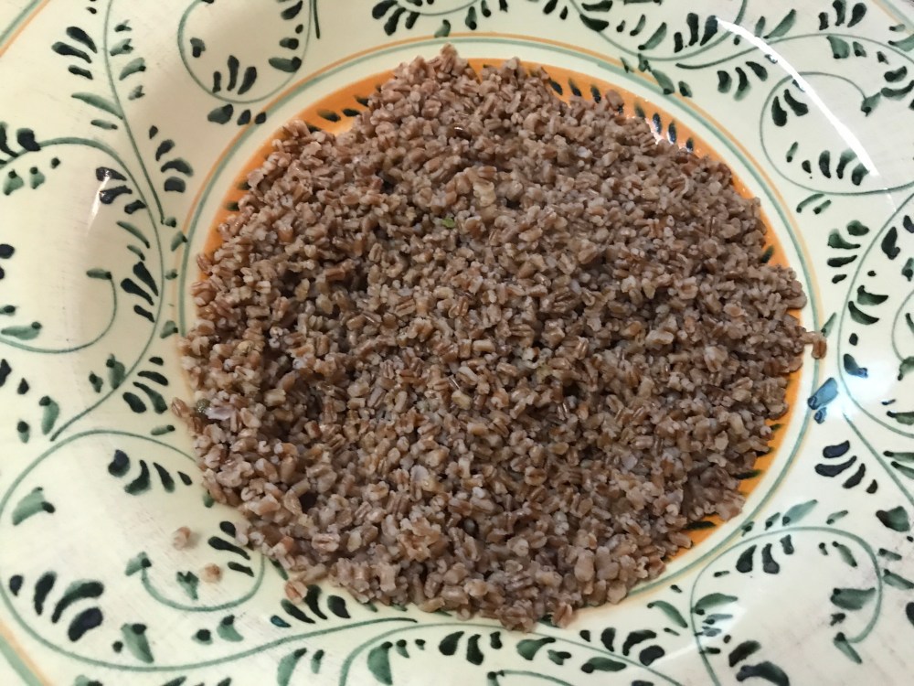 Inspired by Yasmin Fahr’s Warm Farro Salad with Asparagus, Peas, and Feta