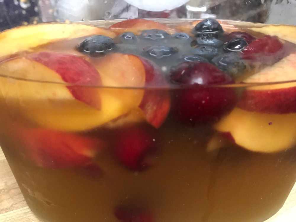 Time for a peach sangria! I am sitting here enjoying my glass of sangria, so this will not be a wordy post, just enough to share the fun…