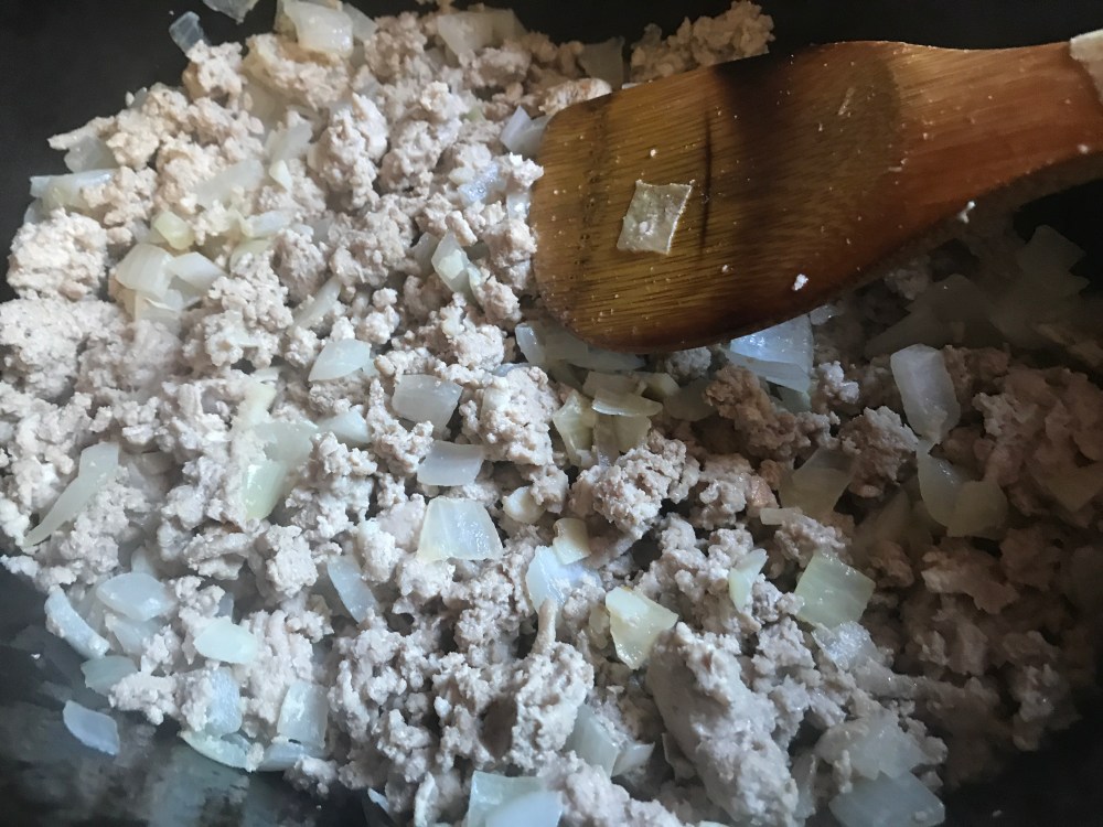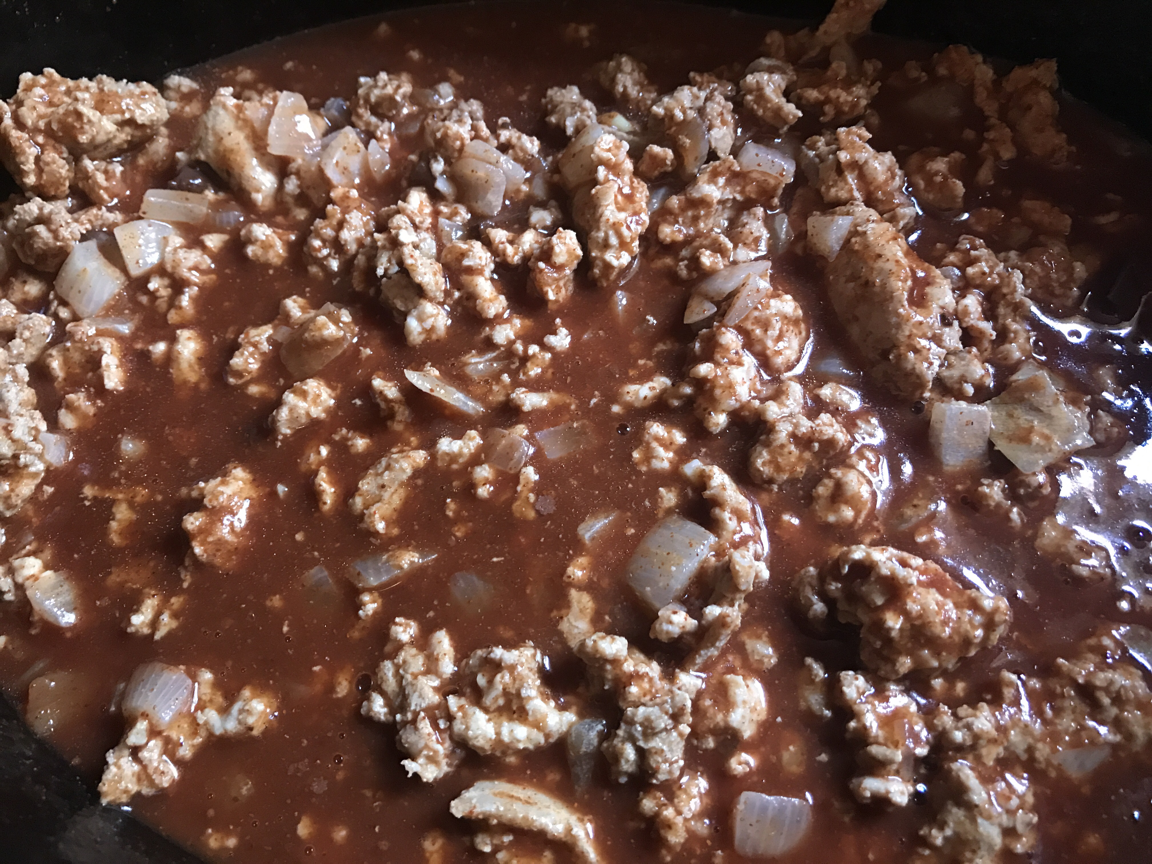Tonight’s version used ground turkey. We didn’t miss the beef at all.