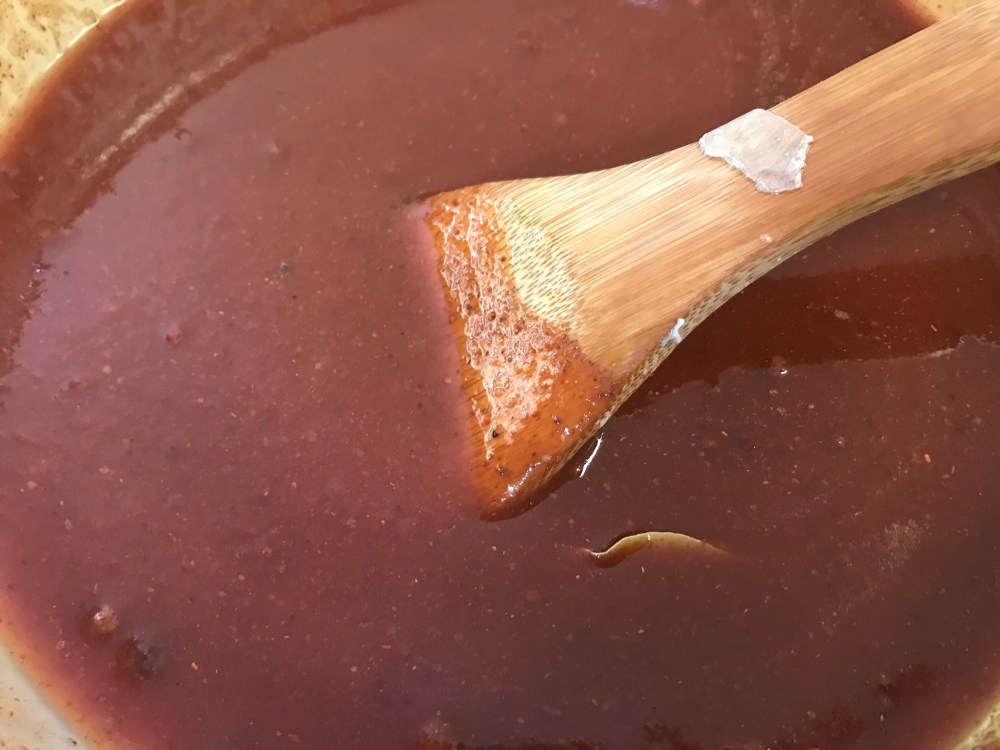 - In a large bowl, combine tomato sauce, broth, vinegar, chocolate and seasonings.