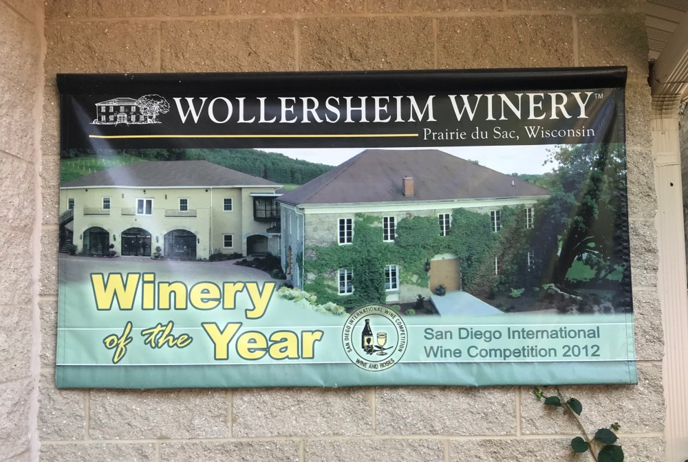 First stop was Wollersheim Winery in Prairie du Sac. They had some very nice wines and made Cam happy by serving him his own sparkling grape juice. We bought the Prairie Fume, made with Finger Lakes grapes, and Dry Riesling, with Washington grapes. And of course, we bought their sparkling grape juice.