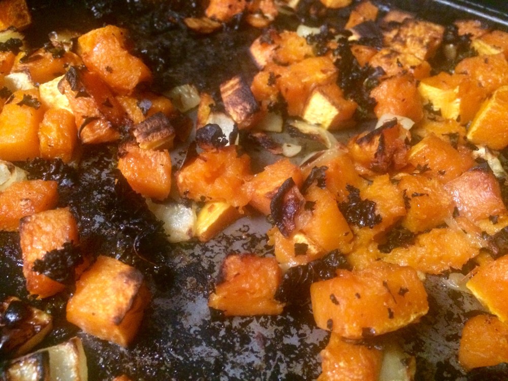 1 1/2 pounds butternut squash, peeled, seeded, and cut into bite-sized chunks (from Highland Orchards)