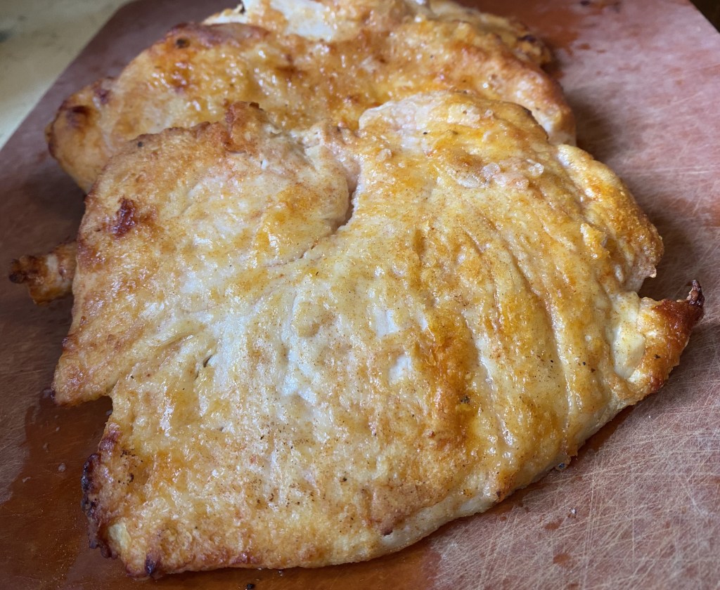 3 – 4 boneless chicken breasts, pounded to ½ inch thick