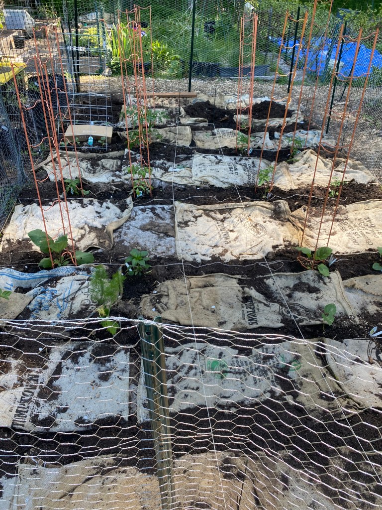 First, a garden update. After weeks of weeding, I have my community garden plot planted, my husband built a fence, and I have been heading over every other day to water. My morning run is around the hill to the garden and back. There is zucchini, cucumbers, lots of heirloom tomatoes, eggplant, peppers, bush beans, fennel, snap peas, chives and kale. The herbs, cherry tomatoes, and garlic are in pots and bags on my deck, so I guess I have 2 gardens.