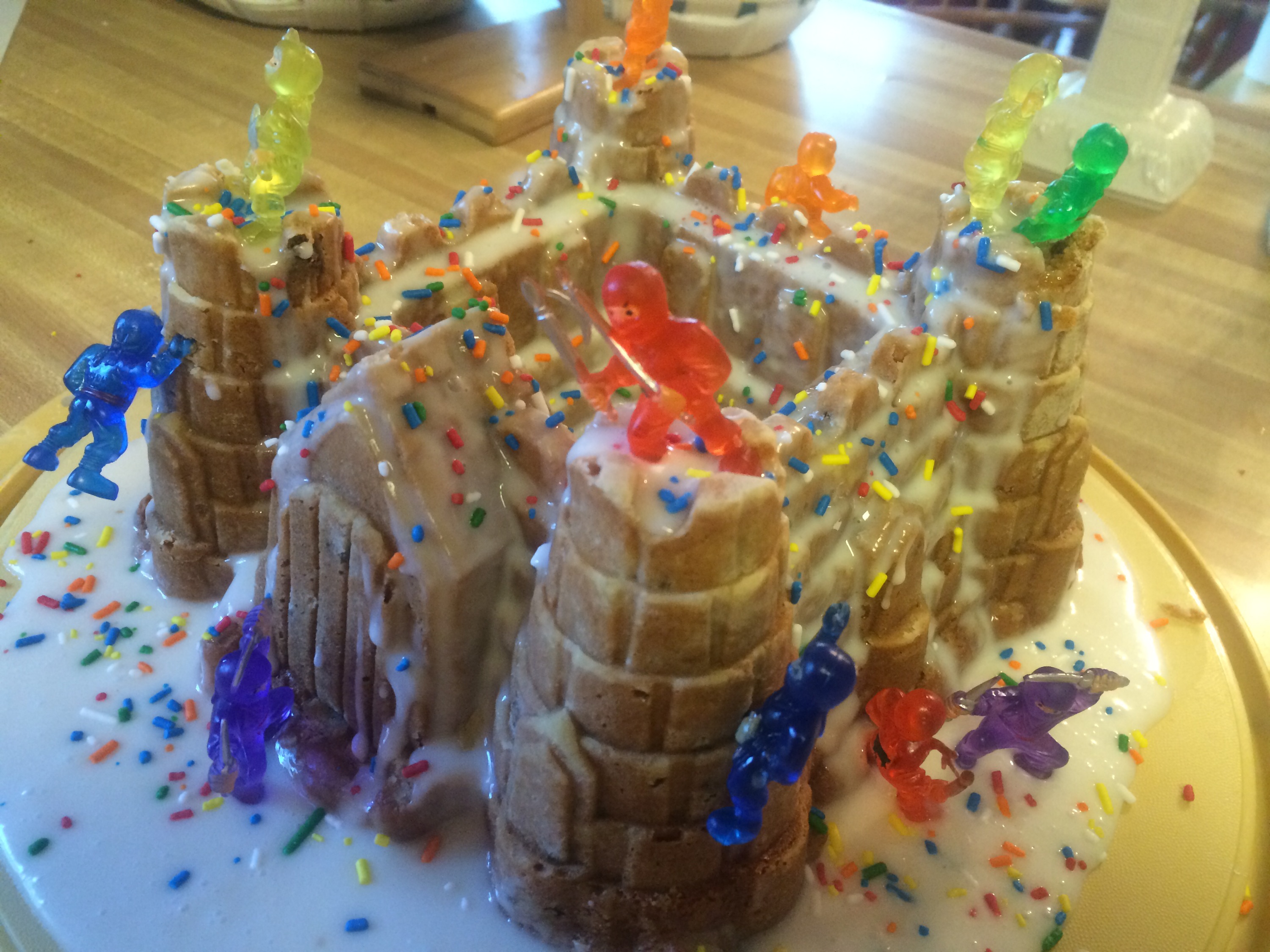 Chocolate chip bundt castle cake with ninja attack for Cam’s 6th birthday. He was the decorator extraordinaire!  Note:  not a from-scratch cake